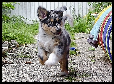 Elements Ebony & Ivory “Smokey” Blue -Merle Rüde,1amberfarbenes 1 braunes Auge, MDR1 +/+, HSF4 clear by parentage |
