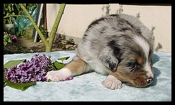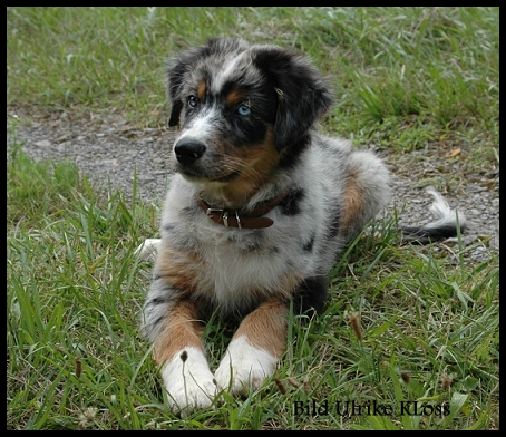 Elements Deep Blue Sea “Whiskey” 08. April 2008 - 06.12.2013 blue-merle, 1blaues, 1 braunmamoriertes Auge MDR1 +/+ clear by parentage, HSF4 clear by parentage |