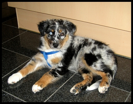 Elements All Good Things VDH BH, TT (Team Test) “ Payton” Blue-Merle, Hündin, Auge: CEA, PRA ect. frei, MDR1 +/+ clear by parentage, vollständiges korrektes Scherengebiss, HSF4 clear by parentage, HD: A2 ED: Grad 0 frei |